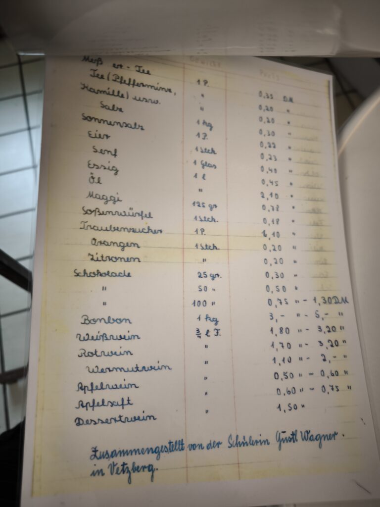 Neben den beiden Führungen gab es auch eine Bilderausstellung mit Bildern von Früher. So waren die Faschingskostüme 1958 sehr originell. Auch waren die Preise für Eier, Mehl, Nudeln oder Schokolade zu sehen.