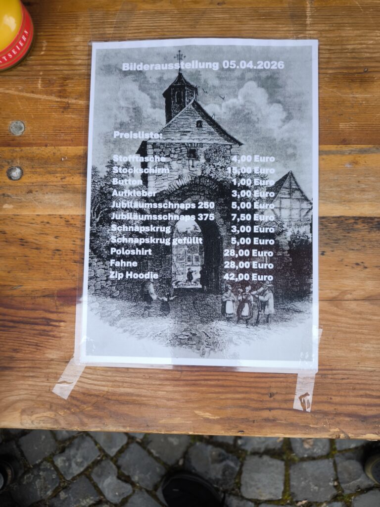 Bürgermeisterin Patricia Ortmann eröffnete um 11 Uhr die Fotoausstellung. Zudem ist ein Buch mit historischen Aufnahmen erschiene, welches man käuflich erwerben konnte. Aber nicht nur ein Buch konnte man erwerben, sondern auch zahlreiche andere Utensilien wie Stockschirm, Jubiläumsschnaps oder Schnapskrug zum Umhängen.